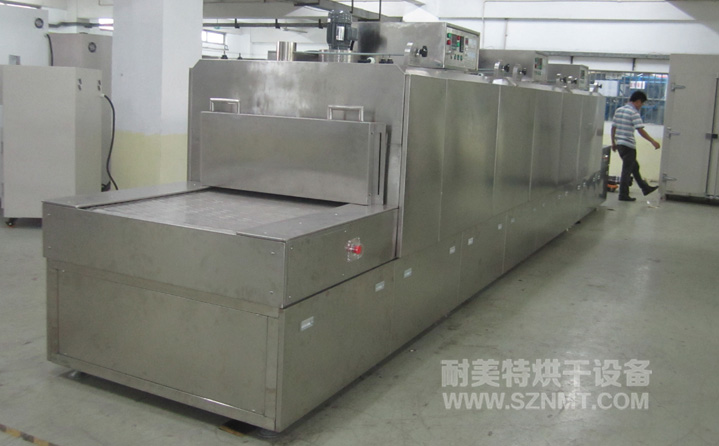 隧道爐外形尺寸:線體總長8米,內寬0.8米,外寬1.3米,總高1.54米(不含馬達);細分為進料部分長1000mm,烘干部分長6000mm,出料部分長1000mm;底部到網帶的高度為0.85米可調;